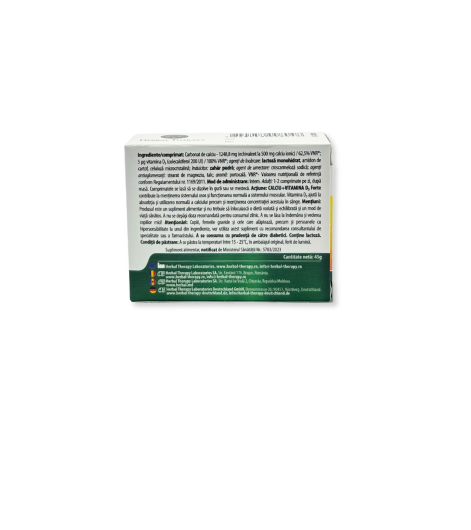 Ingrediente/comprimat: Carbonat de calciu - 1248,8 mg (echivalent la 500 mg calciu ionic) / 62,5% VNR*;